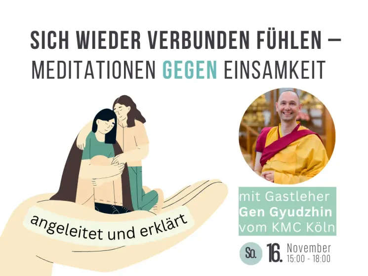 Fühlst du dich manchmal einsam, unverstanden und alleine? In diesem Halbtageskurs lernst du Meditationen, die dir helfen dich aus dem inneren Gefängnis der Einsamkeit zu befreien und Gefühle der Verbundenheit, Liebe und Nähe für andere zu entwickeln und zu genießen.Gen Kelsnag Gyudzhin leitet die entsprechenden Meditationen an und gibt in zwei Sitzung leicht verständliche, praktische Erklärungen zum Thema.