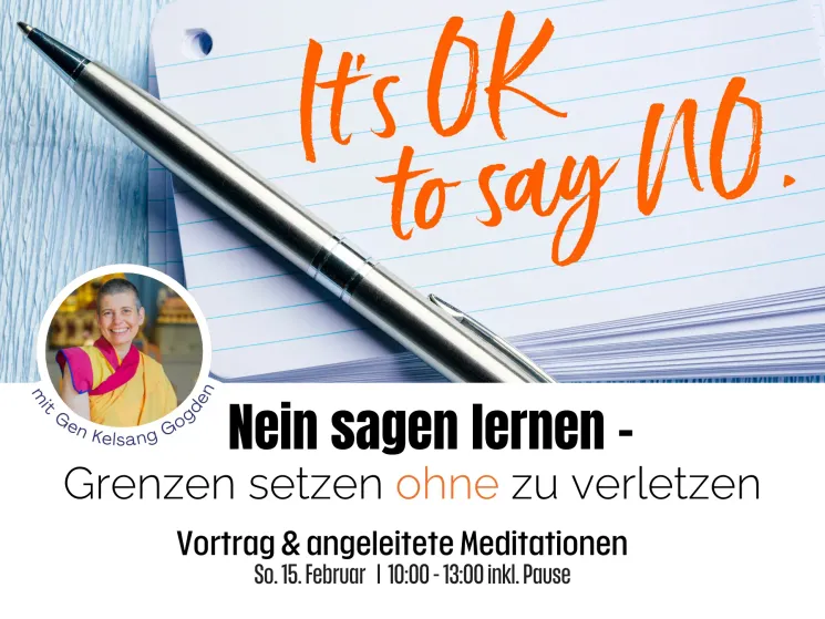 Um Überlastung und Burn-out zu vermeiden und zu lernen, gut für uns selbst zu sorgen, ist es wichtig zu lernen «Nein» zu sagen ohne zu verletzen.Wir müssen unsere Zeit und Energie so einteilen, dass wir anderen in bestmöglicher Weise helfen können, und um darin effektiv zu sein, brauchen wir Zeit für uns, um neue Kraft zu schöpfen, unsere Gedanken zu sammeln und die Dinge im rechten Licht zu sehen.In diesem Kurs lernen wir buddhistische Methoden, um zu erkennen, was es in uns ist, dass uns dazu treibt über unsere Grenzen zu gehen oder es nicht zu wagen uns destruktivem Verhalten oder überzogenen Wünschen und Erwartungen anderer zu entziehen. Können wir diese inneren Ursachen in uns erkennen und zu ihnen «nein» sagen, dann wird es uns auch viel leichter fallen, anderen gegenüber, wenn nötig, «Nein» zu sagen ohne zu verletzen.